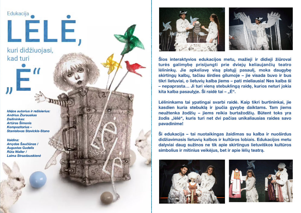 – Kauno valstybinis lėlių teatras su spektakliu LĖLĖ, KURI DIDŽIUOJASI, KAD TURI „Ė“